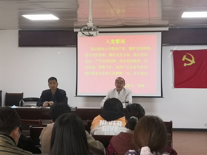 会议开始,由团总支书记罗净净带领学生党员进行庄严的入党宣誓仪式。