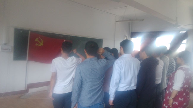 接下来,大家佩戴党徽,重温入党誓词,交纳党费,诵读党章,学习习近平总书记系列重要讲话精神,认真作答党章党规基本知识测试试题。