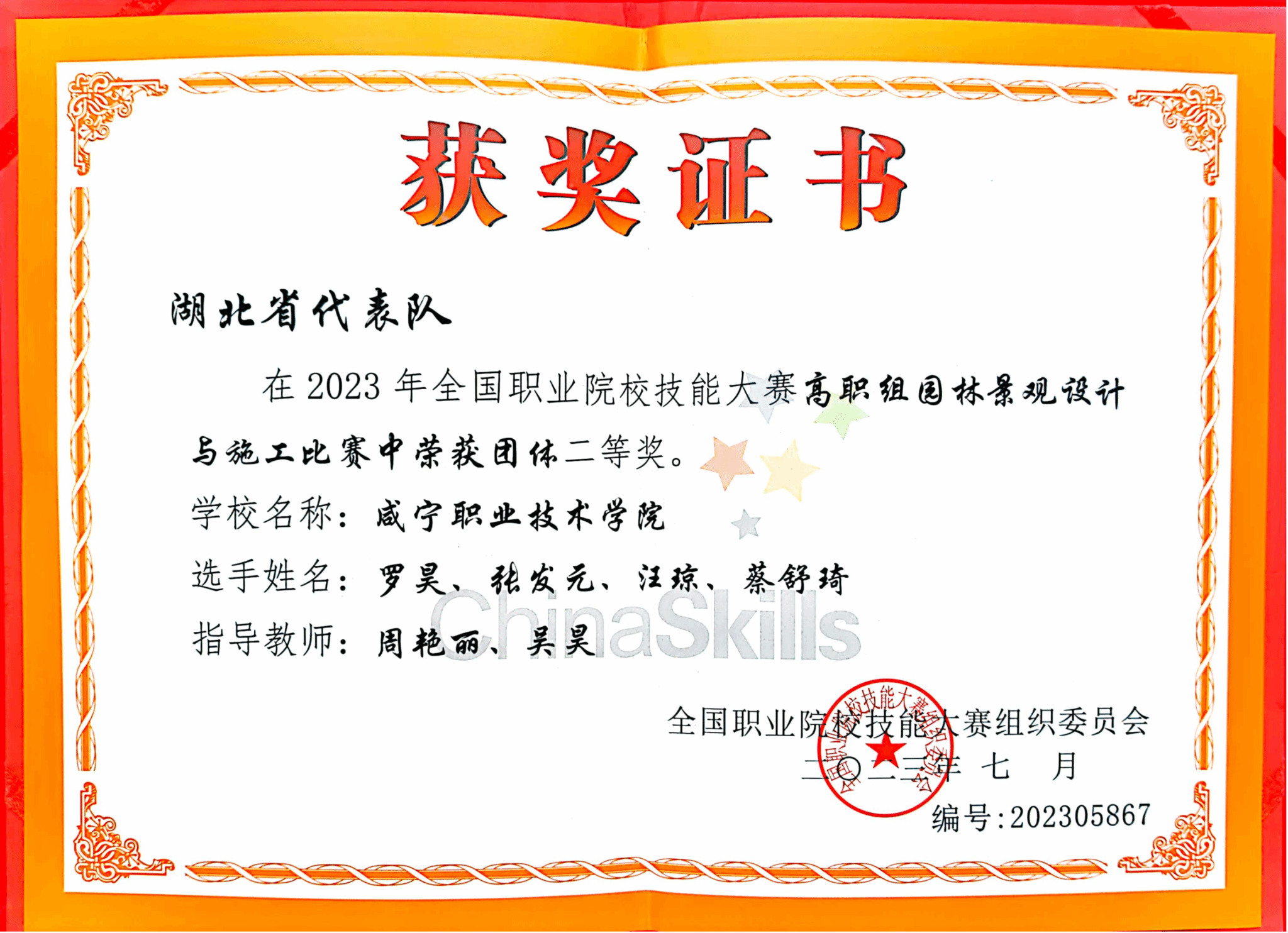 7月24日至7月26日,2023年全国职业院校技能大赛“园林景观设计与施工“赛项在上海农林职业技术学院举行。全国职业院校技能大赛是我国目前社会影响最大的国家级职业院校技能赛事,此次比赛共有来自全国各地的55支代表队的220名参赛选手参加了比赛,我校日韩国产精品学生代表队荣获”园林景观设计与施工”团体二等奖。