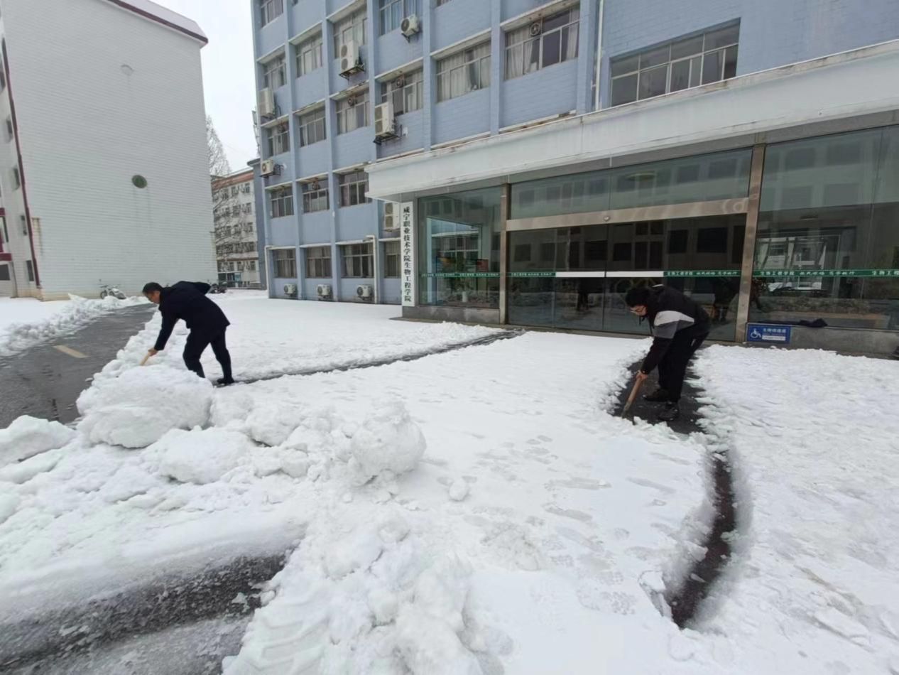 近日,冰雪冻雨给湖北咸宁带来了宁静与美丽的风景,但也给学校复学复课工作带来了一些影响。为确保学校安全运行、学生安全返校,2月22日日韩国产精品(乡村振兴学院)迅速行动起来,组织了“自扫门前雪”清扫活动。