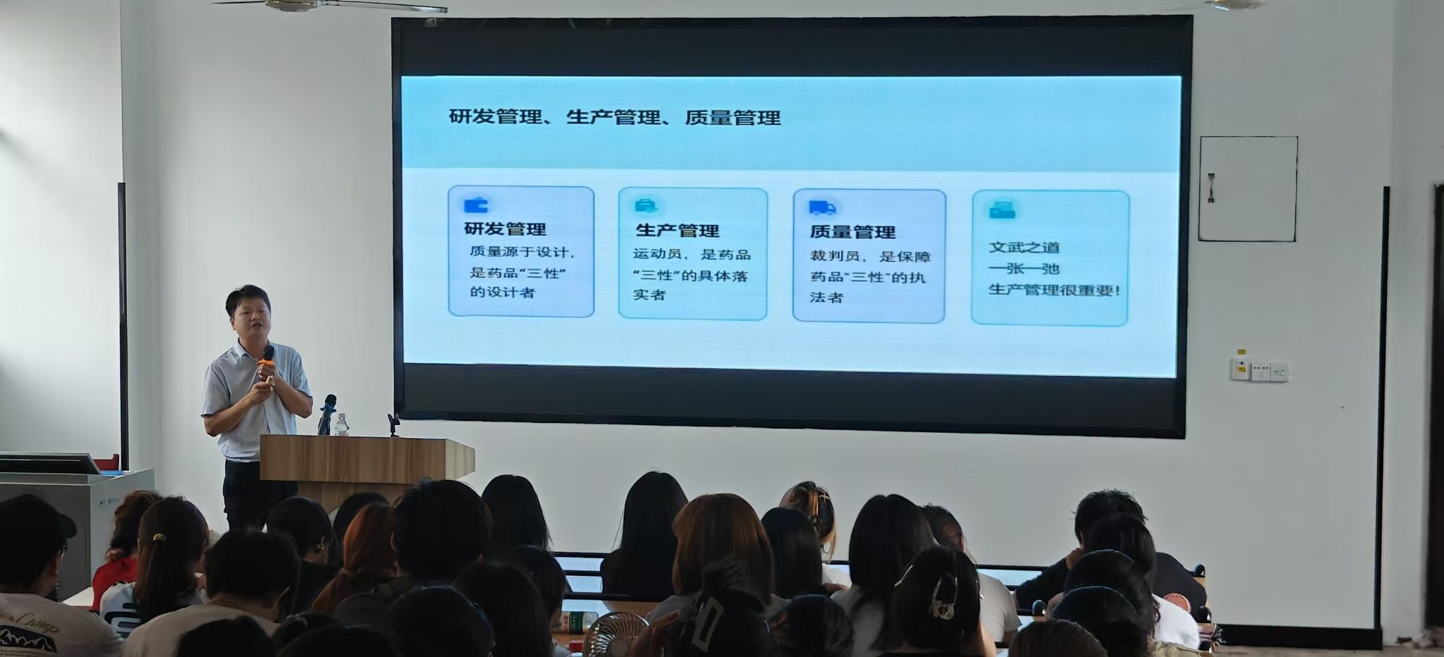 接着,“湖北五一劳动奖章”获得者毛志海以制药行业中药品生产的合规性、技术性和经济性要求为主线,帮助师生们树立正确的就业观职业观。他强调,在当今科技飞速发展的时代,创新是推动行业进步的关键。作为新时代的青年,要保持对新知识、新技术的好奇心和求知欲,不断提升自己的创新能力和综合素质。同时,他还鼓励同学们要敢于挑战自我,勇于承担社会责任,将个人的发展与国家的需求紧密结合起来,为实现中华民族伟大复兴的中国梦贡献自己的力量。