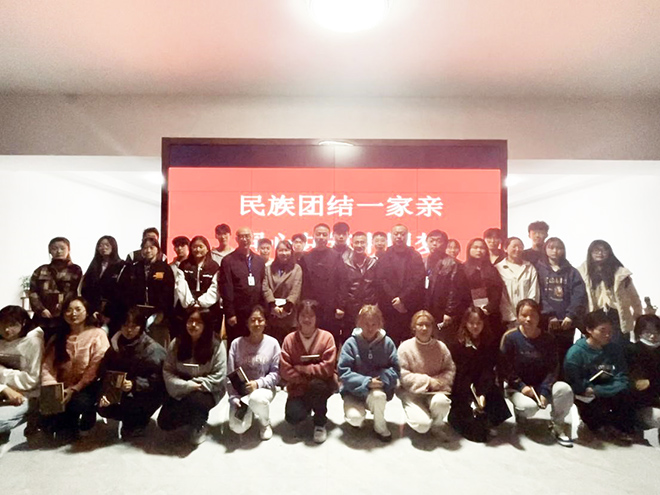 会上,少数民族学生代表对少数民族民风民俗进行了介绍。师生交流互动环节,少数民族学生代表畅聊学习生活趣事,对优美的校园环境、良好的学习氛围、和睦的民族团结氛围表达了热爱之情,也交流了课程学习、生活习惯、校园服务等方面的困惑与困难。老师对同学们在校的积极表现给予肯定,对少数民族同学在学校中遇到的问题予以解惑并提出建议,鼓励和支持少数民族学生积极参与校园文化活动,促进校园多民族文化融合,形成“中华民族一家亲”的良好氛围;同时希望在座同学树立对大学校园学习生活的信心,坚定理想信念,抓住当前宝贵的学习机会,打牢基础、学好本领,为国家、家乡、学校作出积极贡献,增强社会责任感,为实现中华民族伟大复兴的中国梦贡献一份力量。最后,学院为30名少数民族代表发送纪念品寄以美好祝愿。