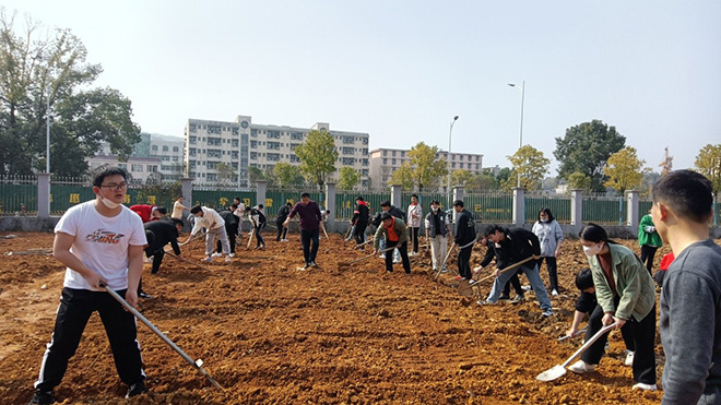 本次实践内容为整地和起垄,结合授课内容、顺应生产时令,理论与实践相结合,让学生深刻认识作物生产。杨老师和徐老师现场讲解了园地规划的要点,整地的要求和起垄的技术要点,并亲自演示。学生们紧跟老师的脚步,边做边学,亲自实践。在整地、起垄劳动过程中,学生们分组作业,分工合作,展开竞赛。老师现场演示并解答了同学们提出的问题,使同学们对园地规划建设有了更为详尽而深刻的了解。