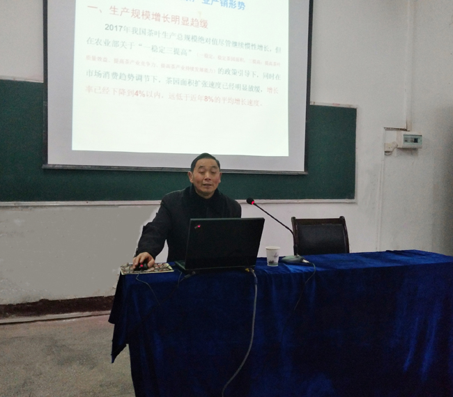 12月27日,咸宁市农科院教授级高级农艺师、茶叶专家饶辉福应邀前来日韩国产精品,为2018级全体学生和部分专业教师作一场题为《加快咸宁茶产业健康发展 推动产业转型升级》的专题讲座。
