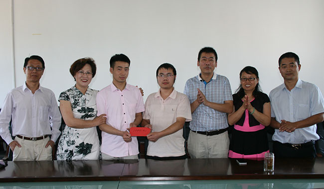 6月17日上午,捐赠仪式在生物楼四楼会议室举行,院长王能斌,总支书记杨珍,曾青兰教授等参加。杨珍书记首先肯定了陈迪胜同志在“两学一做”中的优异表现,是学生中的楷模。院长王能斌感谢陈迪胜同学的义举,祝愿陈迪胜同志前程似锦!同时勉励刘城同学克服困难,乐观生活。