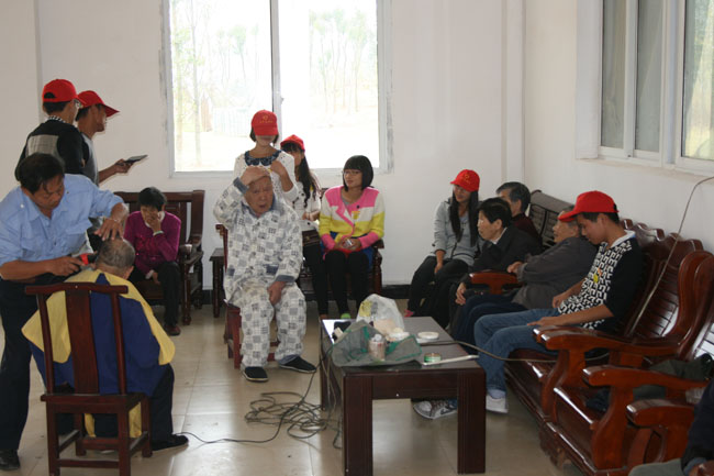 志愿者与老人合影