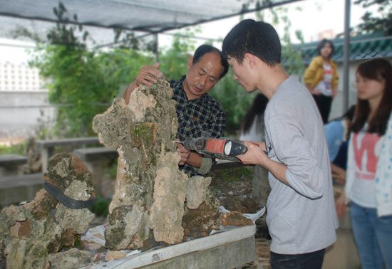 张德炎教授指导学生制作水旱盆景场景
