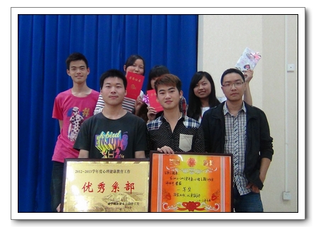 会上,学工处心理健康教育中心边老师对本届5.25心理健康教育月活动进行了总结,学工处胡处长宣读了心理健康教育月表彰决定,生物工程系荣获“优秀系部”。学工处胡林富副处长为生物工程系代表颁发了荣誉证书和奖品。学工处副处长万虎讲话,他勉励全院心理委员发扬四种精神,一是发扬勤于学习、精于专业的进取精神;二是发扬忠于职守、善于疏导的敬业精神;三是发扬勇于担当、刻苦勤奋的奉献精神;四是发扬乐于协作、臻于共进的团队精神。