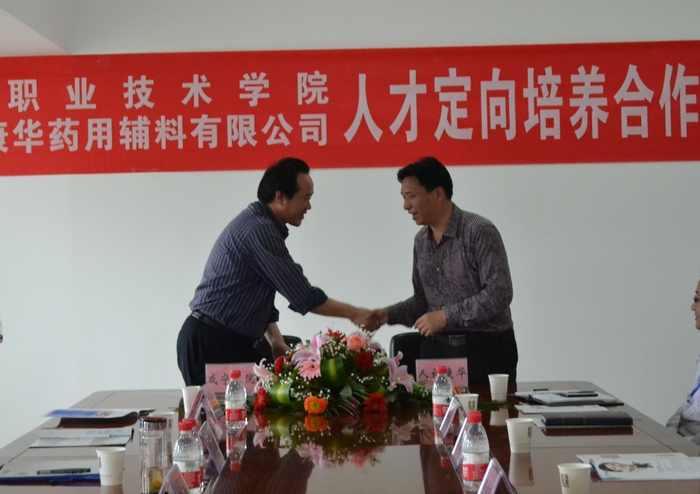 签约仪式上,湖北人福康华药用辅料有限公司董事长黄建华我院副院长万齐元先后致辞,赤壁市人民政府副市长刘智毅作热情洋溢的讲话。最后,我院副院长万齐元和湖北人福康华药用辅料有限公司董事长黄建华分别代表甲乙双方在合作协议上签字。