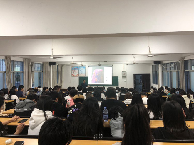 黄俊潮从人类历史长河中不同种类致病微生物为开篇,选用生动的案例为同学们讲解微生物与人类健康的关系;结合大家专业,深入浅出讲述生物制药的发展简史,最新研究方向等;同时还润物细无声融入思政元素,增强学生爱国之心和文化自信。