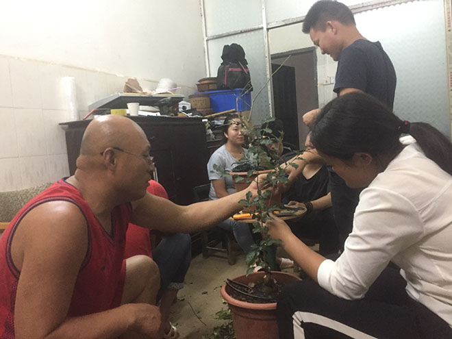 讲解、示范黄皮柞刺桩景造型要素和技术