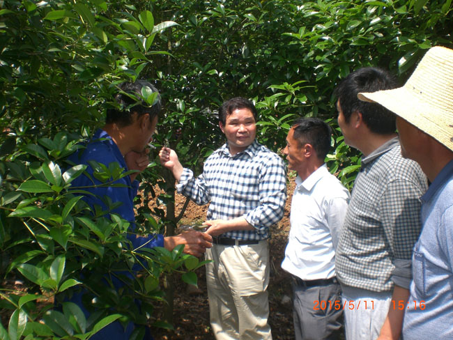 2015年5月9日,王振启副教授应通山县移民局邀请到桂花苗木产区--通山县燕厦乡进行农村实用技术培训,针对当地农民的需求,主要讲授了桂花栽培技术,当地桂花苗木生产户100余人闻讯前来参加。上午理论课分三讲:第一讲主要介绍了桂花密封扦插育苗技术,桂花全光照自动喷雾扦插技术,桂花种子育苗技术。第二讲主要讲解桂花苗圃的设立技术,桂花小苗移栽技术。第三讲主要讲授圃地桂花修剪原则,圃地桂花修剪技术。在讲课过程中,另有40多人前来旁听。讲课结束后,很多学员邀请老师去自家苗圃地指导;有的等了一中午,反映出农民对科技指导的渴求。
