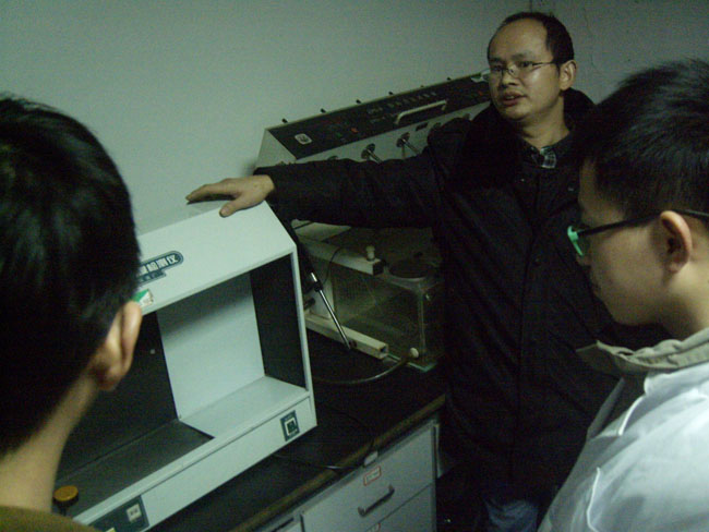 生测室李尚仁主任在给学生讲解原子吸收分光光度计