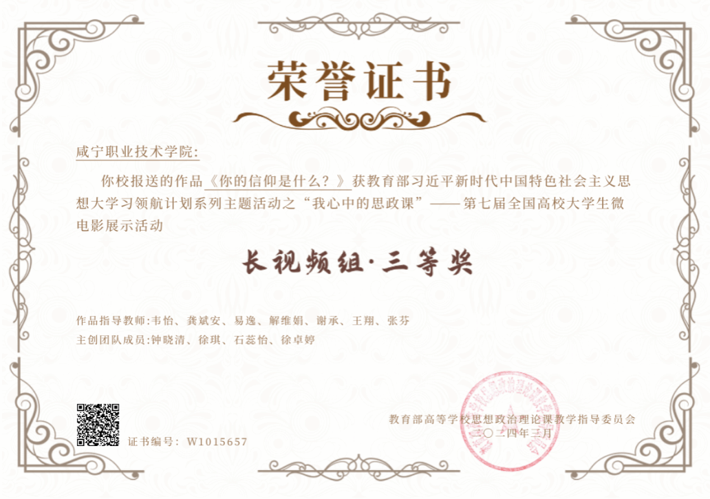 2023年以来,我院学生严璐、吴柳爚、毛天参赛的作品《何功伟烈士纪念园》获第二届全国大学生红色全景资源创意展示大赛一等奖,学生钟晓清、石蕊怡、徐卓婷参赛的2个作品《弘扬优良作风,树立时代新风》、《你的信仰是什么》分别获得第七届全国高校大学生讲思政课公开课展示活动二等奖和三等奖。