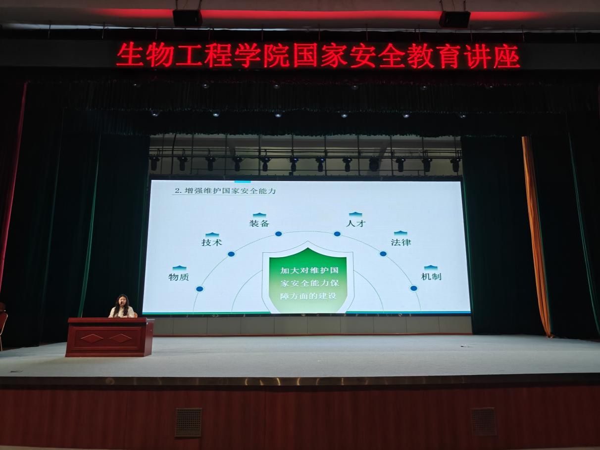 在阐释总体国家安全观时,王璇重点解读了“五大要素”与“十个统筹”的方法论,结合生物工程领域特点强调科技安全的重要性。她列举了我国设立芯片产业投资基金突破“卡脖子”技术、量子计算机研发取得全球领先等科技成就,并联系生物安全领域,提醒同学们关注基因编辑技术伦理风险、生物数据跨境流动等新兴议题。通过“某高校学生泄露未公开地理测绘数据被查处”“大学生举报境外传播港独动画”等警示案例,她号召青年学子将专业学习与国家战略需求紧密结合,在实验室操作、学术交流中严守安全规范。