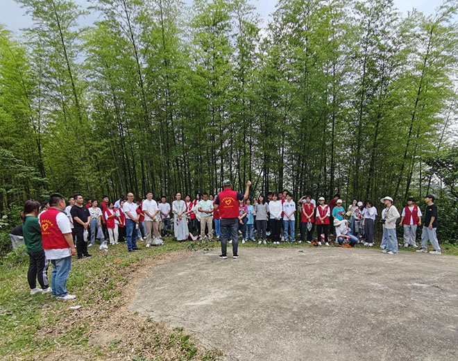 学生党支部书记胡美勇作总结,他首先介绍随阳村退役军人服务站负责人徐稳平不忘先烈、砥砺前行的先进事迹:多年来无偿搜集宣传烈士的事迹、寻找烈士遗物和墓碑,着力把随阳村建设成为红色教育基地。号召大家向他学习,同时对同学们不畏艰难、团结互助、乐观向上的表现进行了充分肯定,鼓励大家在困难挫折面前坚守初心、磨炼意志,号召大家继承革命先辈的优良传统,从一点一滴的小事做起,踏着革命烈士的足迹,为共产主义事业奋斗终身。