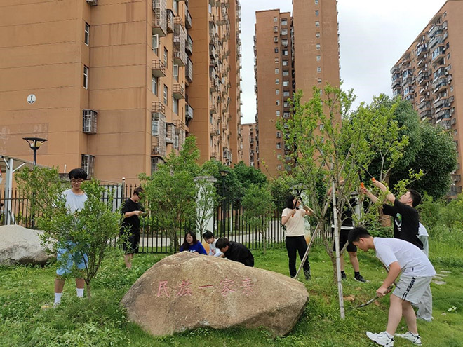 为深入开展民族团结进步宣传教育,扎实有效推进关爱少数民族工作,创建和谐技能校园,6月9日上午,我院在书苑小区“民族团结石榴林”开展关爱少数民族暨技能修剪活动。活动由辅导员徐群刚组织,全院少数民族学生及部分学生代表参加。