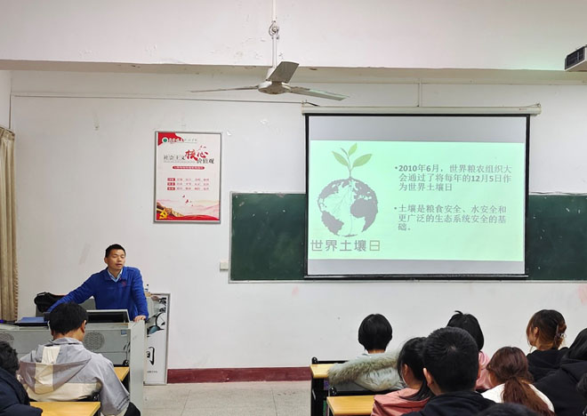 为防止土壤盐碱化,提高人们对维护健康生态系统和人类福祉重要性的认识,值此第八个世界土壤日来临之际,12月5日晚,我院在生物楼204室开展“防止土壤盐渍化,提高土壤生产力”主题班会。班会由2021级现代农业技术一班班长刘昌邦主持,辅导员徐群刚及全体21级现代农业技术专业学生参加。