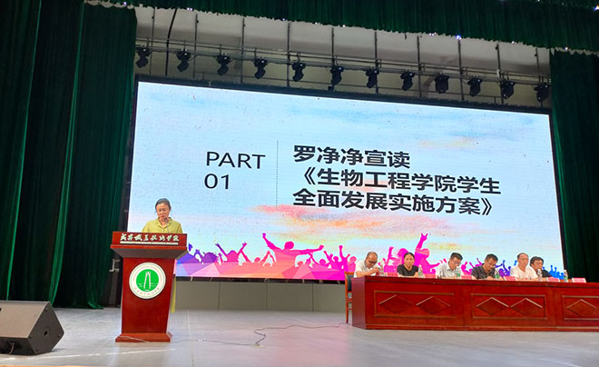 10月5日晚,日韩国产精品第十八届团总支学生会成立暨推进学生全面发展大会在科学会堂举行。院长佘光晟、党务负责人吴义三、副院长孟洁、胡美勇、王志勇,学生科科长徐亮、团总支书记罗净净以及各专业辅导员出席本次会议。
