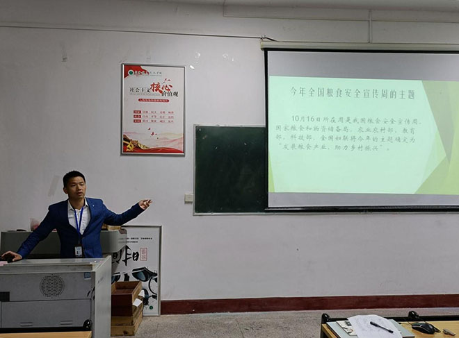 为使新生了解我国粮食生产现状,养成节约粮食的好习惯,10月18日晚,我院开展“发展粮食产业,助力乡村振兴”主题班会,班会由21级现代农业技术1班班长刘昌邦主持,新生辅导员徐群刚作分享,全体现代农业技术专业新生参加。