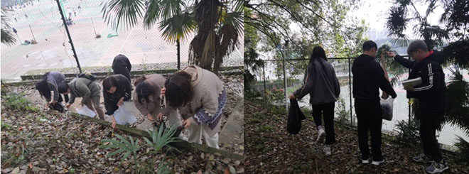 志愿服务区域主要是学生宿舍8栋、9栋外围,志愿者们将地上的烟头、塑料袋、废弃瓶、废弃口罩等垃圾收拾干净,还周围片区绿色、洁净优美环境。