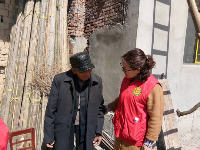 焦老师与老人交谈