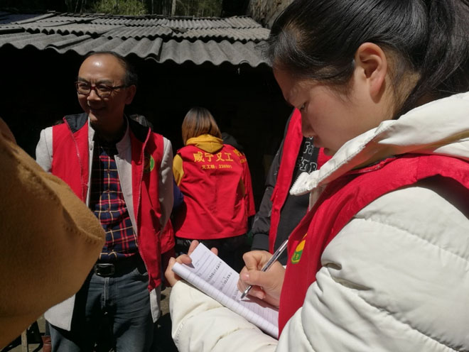 志愿者在记录老人们的信息