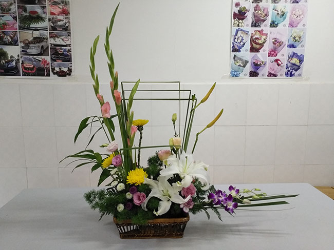此次插花比赛项目为艺术插花作品的设计与制作。参赛学生可以在比赛前创设主题、精心构思、合理选材,在比赛现场独自完成插花作品,将自己的创意变成一件件美丽的艺术品。学生设计的作品主题明确、造型新颖,且运用了多种现代插花艺术表现手法,如加框技法、构架技法、组群技法、阶梯技法等。经过两个小时激烈的角逐,17级园艺技术专业付梦娟等六位同学设计的插花作品脱颖而出,取得了优异的成绩。