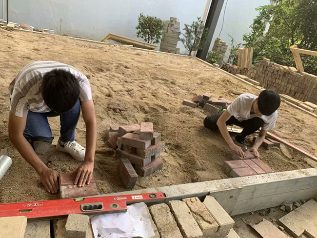 为进一步深化教学改革,展示我校广大师生精神风貌和职业技能水平,实现以赛促教,以赛促学,我院于6月11日在园林工程实训基地进行园林景观施工比赛——园林铺装,要求选手们在0.5个小时内完成1米长,40厘米宽的面包砖园路施工。由于施工场地以及施工工具的限制,比赛分为7组(每组6人)先后进行。