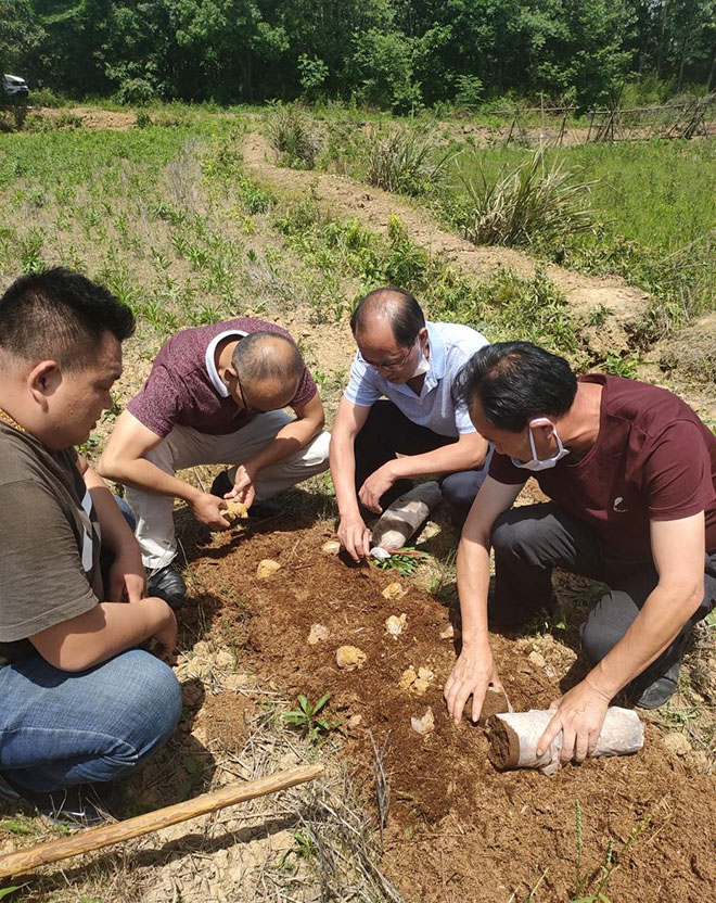 为贯彻中共咸宁市委,咸宁市人民政府《咸宁市乡村振兴战略规划(2019-2022)》,配合市委市政府加快构建现代农业产业体系战略,按照产业兴旺等总要求,聚焦发展特色主导产业,奋力推进百亿楠竹产业建设,在第四个“全国科技工作者日”即将来临之际,为发挥协会桥梁纽带作用,咸宁市食用菌协会主要负责人、湖北省食用菌协会理事、咸宁市食用菌研究所所长、咸宁职业技术学院王志勇教授,联袂湖北省食用菌协会理事、湖北生态工程职业技术学院李万德教授,大冶市食用菌协会会长、竹荪种植专家熊永平先生一行于2020年5月18日来到赤壁市官塘驿镇指导咸宁职业技术学院2018级“一村多”现代农业技术专业学生张逵进行竹荪种植。
