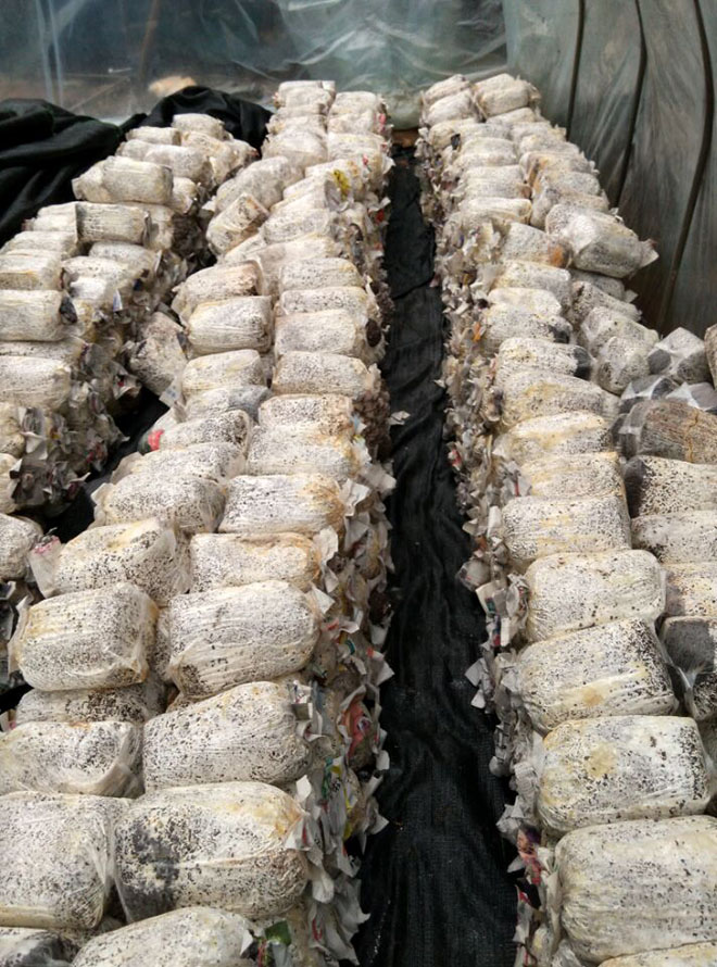 目前用于扶贫的平菇菌丝基本满袋,部分长势好的已开始出菇。按学校扶贫工作的有关安排,这些发好菌的平菇菌袋将于近日送往扶贫点。研究所的成员在前期对扶贫点基本情况调研及对村民进行食用菌生产技术宣传的基础上,还精心编写了《平菇标准化生产技术》、《香菇袋料高产技术》等相关技术指导资料,准备在运送平菇菌袋时将这些资料免费发放给村民。