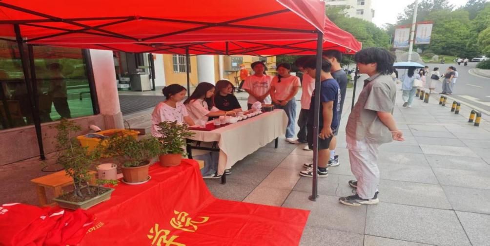 活动现场,同学们布置了精美的茶艺展示区,普及茶叶的种植、采摘、制作等知识,并现场制作茶饮,邀请师生品尝。同时还设置茶叶品鉴环节,志愿者们以优雅娴熟的动作展示着泡茶技艺。从准备工具、温杯、投茶、注水手法、出汤时间、斟茶奉茶、品饮,每一个步骤都有条不紊,尽显中华茶艺之美。师生们纷纷驻足,品尝着不同品种的茶叶,感受着茶香在唇齿间流转。