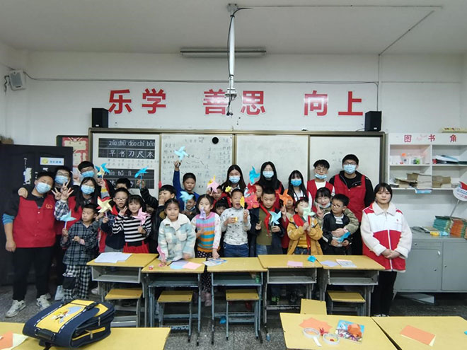 活动开始,志愿者分队队长李微为大家讲解风车制作的基本原理和主要技巧,小朋友们边学边做制作风车。遇到不会的地方,小朋友会甜甜地向哥哥姐姐寻求帮助。志愿者和小朋友们相处融洽,课堂氛围活跃,这次手工课堂,志愿者带领小朋友完成了风车、花篮、爱心等多个手工制作作品。