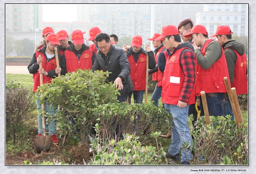 3月5日是毛主席题词“向雷锋同志学习”51周年纪念日,也是我国第十五个青年志愿者日。上午8时,阳光明媚,春意盎然,78名志愿者在院团委书记赵巧丽老师的带领下来到咸宁人民广场,参与到团市委组织的植树造林活动中。