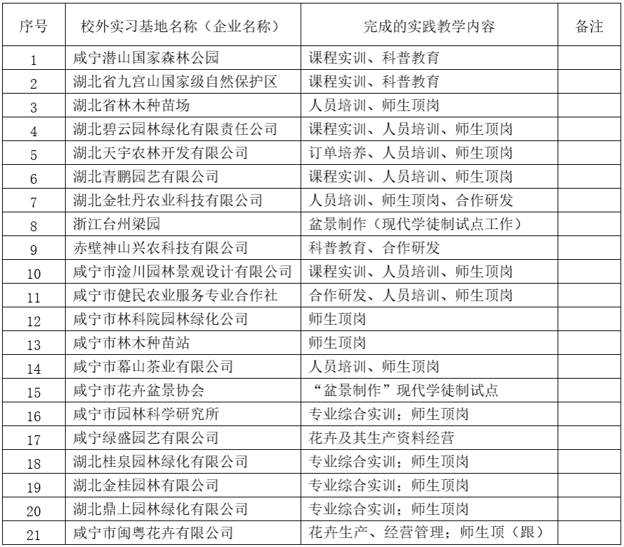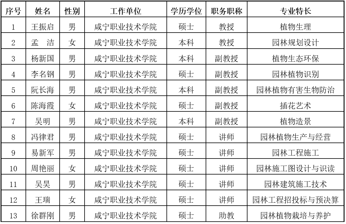 咸宁职业技术学院园林技术专业于2003年经湖北省教育厅批准正式开设,先后被立项为湖北省职业教育重点专业、湖北省园林技术实训基地、湖北省省级教学团队、中央财政提升专业服务能力项目。专业现有专任教师13人,在校生学353人。