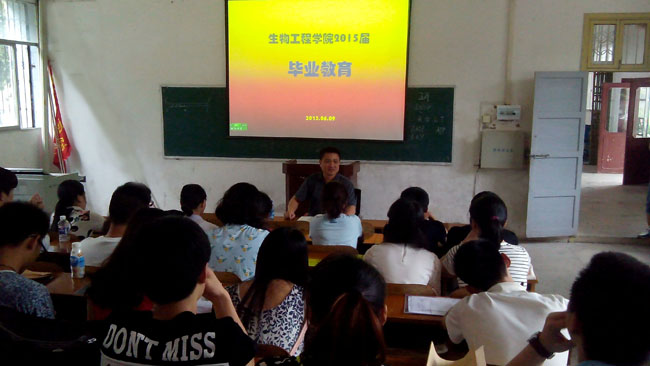 2015年6月9日下午3点,日韩国产精品2015届毕业生在生物楼103室接受最后一课——毕业教育。 毕业教育由沈召洪老师主讲,沈老师旁征博引,着重引导学生树立正确的就业观和创业观;教育学生要感恩母校、孝顺父母;勉励毕...