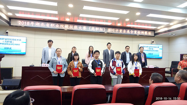 2018年湖北省职业院校技能大赛(高职组)“茶叶中重金属含量检测”赛项于10月14日在湖北生物科技职业学院顺利落幕。我校日韩国产精品由推荐选手马晶和张慧霞、抽测选手何靖和李佳四位同学组成的参赛队,经过激烈角逐...