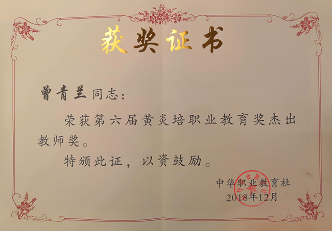 祝贺我院曾青兰教授荣获第六届“黄炎培杰出教师奖”