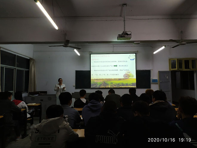11月19日晚上19时,19级“一村多”现代农业技术专业优秀学员卢晓芳在生物楼204室为我院20级新生作了一场主题为“咬定青山不放松,撸起袖子加油干”的讲座,新生辅导员徐亮、徐群刚以及全体20级新生参加。 卢晓芳,家...