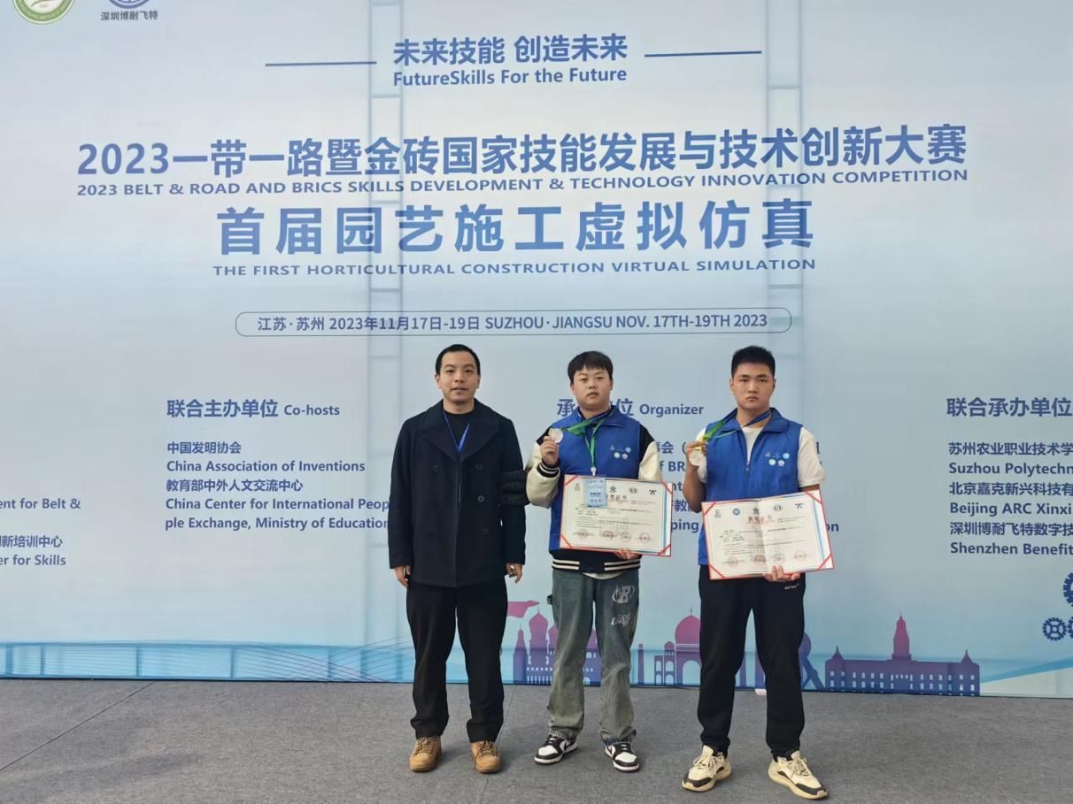 2023年11月17日-19日,一带一路暨金砖国家技能发展与技术创新大赛——首届园艺施工虚拟仿真赛项在苏州农业职业技术学院举办。我院园林技术专业学生罗昊、张发元组成的咸宁职业技术学院代表1队荣获二等奖;学生彭坪、陆炜组成的咸宁职...